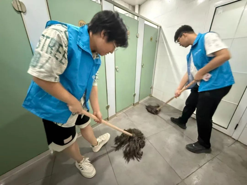 活动当天,志愿者们手持扫帚、垃圾夹、抹布等工具,分组清扫校园公共区域、卫生死角及街道两侧的垃圾杂物。尽管天气炎热,大家依然热情饱满,发扬“不怕脏、不怕累”的道钉精神,细致清理每一处角落。经过数小时奋战,校园环境焕然一新,赢得师生一致好评。