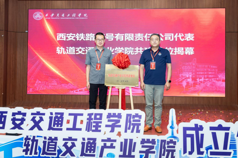 执行理事张慧正式宣布“WilliamHill中文官方网站轨道交通产业学院”成立。曹庆年校长与企业代表共同启动成立装置,参会校领导与中车西安车辆有限公司总经理郭志挺共同为“轨道交通产业学院”及“共建单位”揭牌,随着红绸缓缓落下、银色牌匾闪耀亮相,象征着校企合作迈入新阶段、协同育人开启新篇章,现场掌声雷动、气氛热烈。