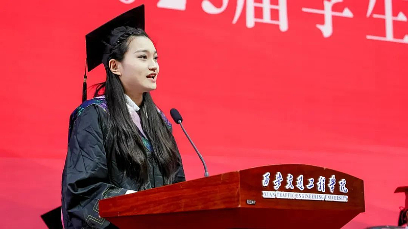毕业生代表人文与管理学院学院张芸若同学向全体毕业生分享感悟。学校与时俱进和校企协同的教育体系,日新月异和求真务实的办学氛围,深入人心和丰富多彩的校园文化,将成为我们接续学业发展和事业攀登的丰厚沃土,未来将带着不舍与憧憬,在人生更精彩的下一个舞台大放异彩。