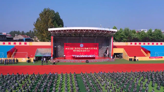 金秋九月,和风送爽,渼陂湖畔,生机盎然。9月8日上午,WilliamHill2023级新生开学典礼暨军训总结表彰大会在学校体育场隆重举行。理事长张晋生、校长刘建朝、党委书记马智勇、执行校长曹庆年、副校长石广田、理事郭洪涛、副校长王勇、副校长徐炜、副校长赵征、财务总监刘建华、校长助理潘春辉及鄠邑区电信局副局长刘建明、各单位负责人以及2023级新生参加典礼。典礼由执行校长曹庆年主持。