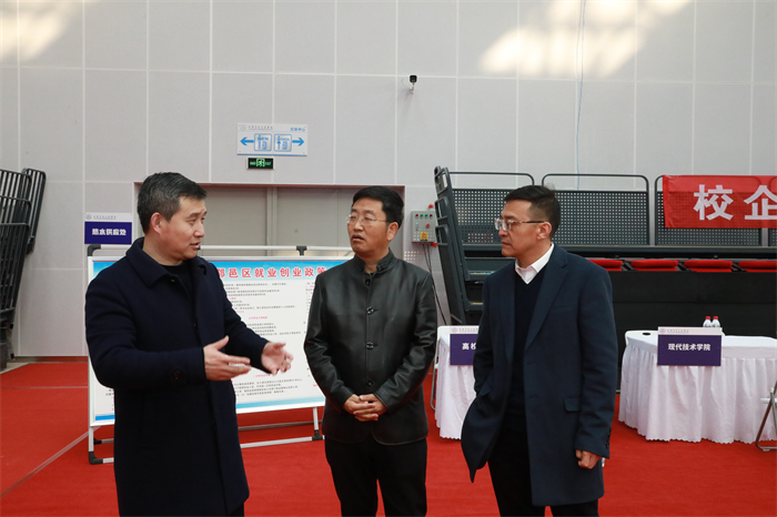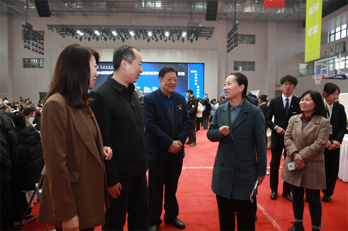 省教育厅领导、校领导先后与用人单位负责人亲切交流,详细了解企业招聘需求,并就当前就业形势与企业用工需求进行了沟通。