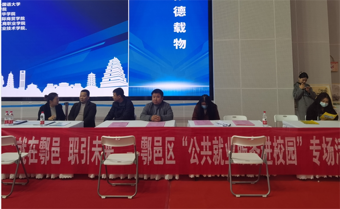鄠邑区人才交流中心主任王毅及工作人员开展“公共就业进校园专场政策宣传”活动