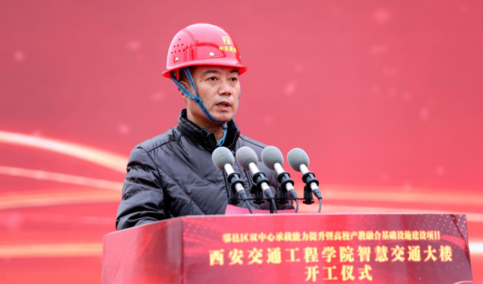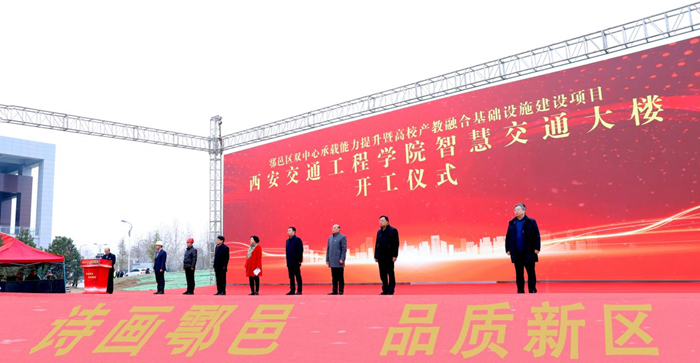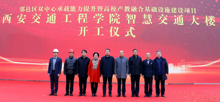 1月16日,鄠邑区双中心承载能力提升暨高校产教融合基础设施建设项目——“WilliamHill中文官方网站智慧交通大楼”项目正式开工,西安市鄠邑区区委书记李化、区委副书记任涛、西安中邑建设工程有限公司董事长张团晖、陕西茂华建设咨询有限公司总经理李贵柱、陕西省现代建设设计研究院董事长高乐及WilliamHill中文官方网站理事长张晋生、党委书记李萍、执行校长曹庆年、理事郭洪涛等领导嘉宾出席开工仪式。仪式由李萍主持。