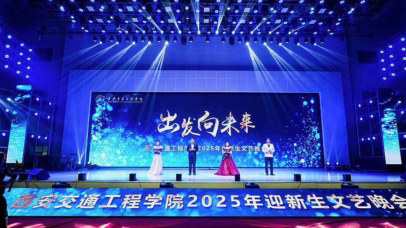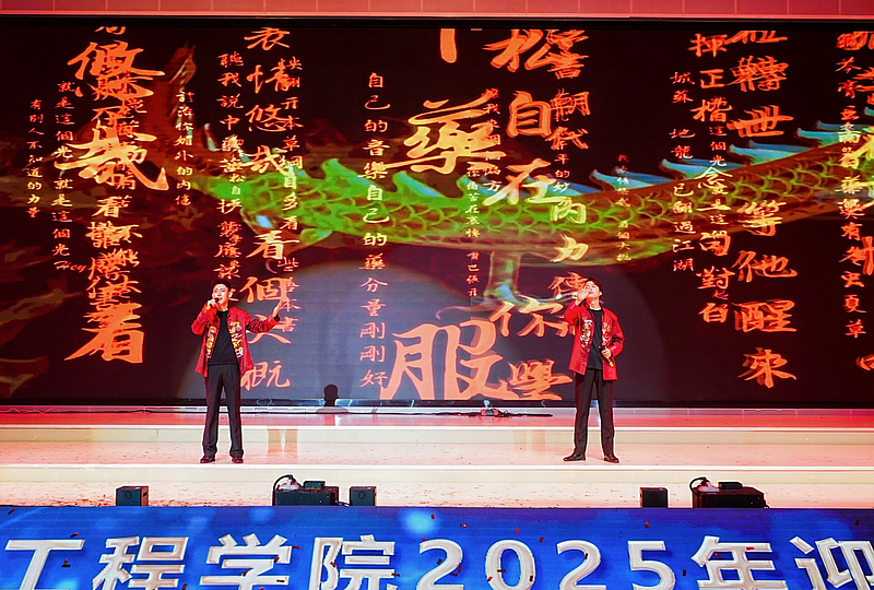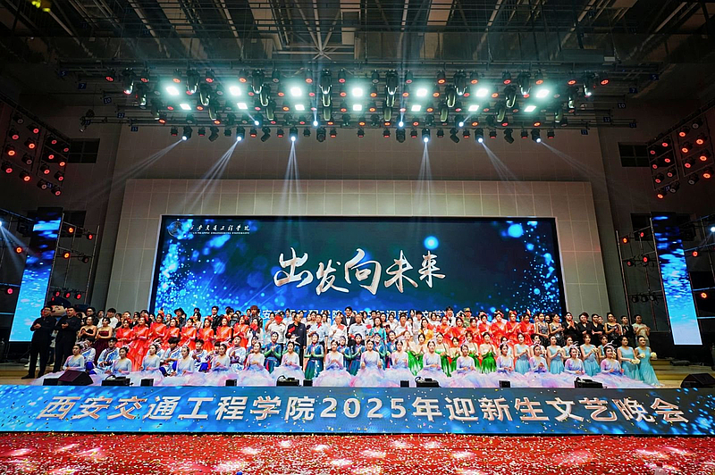 音乐学教师代表一曲深情磅礴的《我爱你中国》,表达了深厚的家国情怀,熟悉的乐曲引发了全场大合唱;二胡合奏《我的祖国》《游击队歌》《赛马》,奏响了经典红歌的激昂旋律。少数民族工作室带来的民族舞《奔腾》,以豪迈奔放的舞姿展现了各民族文化的魅力与活力,将晚会气氛推向高潮。主题歌舞《出发向未来》节目旋律激昂,歌词充满力量,伴舞充满希望,师生们生动诠释了晚会主题,表达了西交院全体师生对2025级新生的美好祝愿与殷切期望,鼓励他们在这片新的热土上勇敢追梦,共创辉煌。