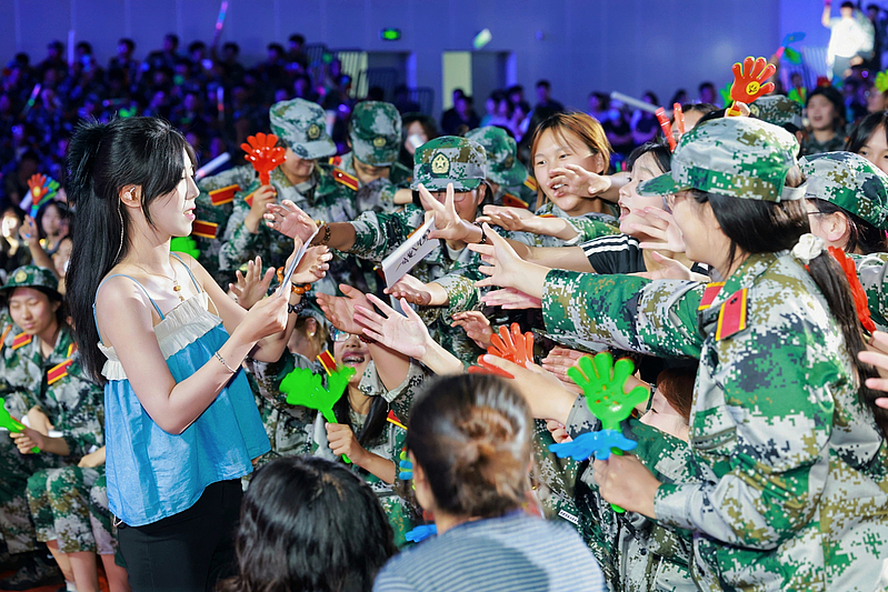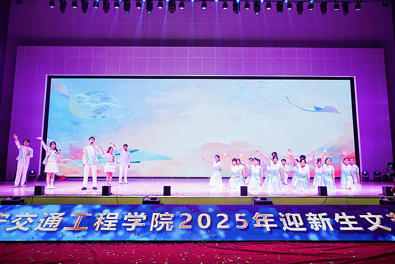 晚会在炫酷的灯光秀中拉开帷幕,随着阵阵烟花全体2025级新同学们的姓名“火力全开”,瞬间点燃全场气氛。大学生艺术团带来开场歌舞《我的未来不是梦》,激昂的歌声与充满活力的舞蹈相得益彰,表达了对新同学的美好祝愿。由宁慧、李文龙、路亮、李梦阳老师深情演唱、舞之韵民族社倾情伴舞的《道钉之光》,以铿锵之力展现了交院人坚韧不拔的精神品质;舞蹈《茉莉花开》,以优雅灵动的舞姿描绘出江南水乡的诗情画意,尽显传统韵味;大学生艺术团接连奉上充满力量的歌曲《是龙》和幽默十足的街舞《喜剧之王》,瞬间引燃现场,展现了青年学子的蓬勃朝气。