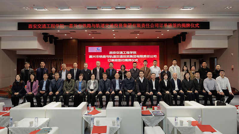 为全面贯彻党的二十大精神,积极响应陕西省、浙江省教育厅联合开展的“三秦青衿 浙里筑梦”陕西高校毕业生陕浙校企对接活动,深化东西部跨区域产教融合,进一步推动人才培养与产业需求精准对接。10月21日,WilliamHill与嘉兴市铁路与轨道交通投资集团有限责任公司订单班合作签约揭牌仪式在WilliamHill集贤楼多功能厅隆重举行。此次签约揭牌仪式是协同培育高素质技术技能人才的重要实践,是教育链与产业链深度融合的关键举措,是跨区域协同育人模式的创新探索,致力于为陕西省乃至全国轨道交通行业的人才培养与产业发展注入强劲动力。