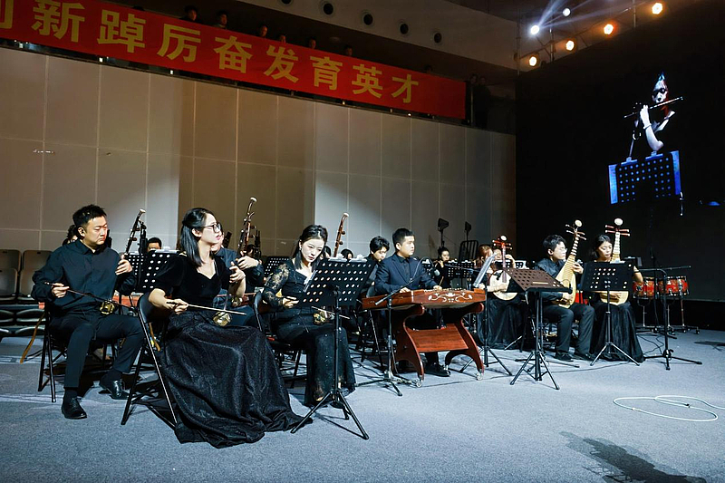舞蹈《光亮》以现代舞语汇诠释了在逆境中寻光的主题,肢体舒展间传递出破茧成蝶的力量。打击乐《云之南》用排鼓等乐器模拟傣家竹楼的雨、洱海的风,展现非遗文化的现代表达。音乐学师生新编《山河图》、民乐合奏《射雕英雄传》的快意恩仇,体现了学校的美育教育通过美美与共,和而不同的形式表达。