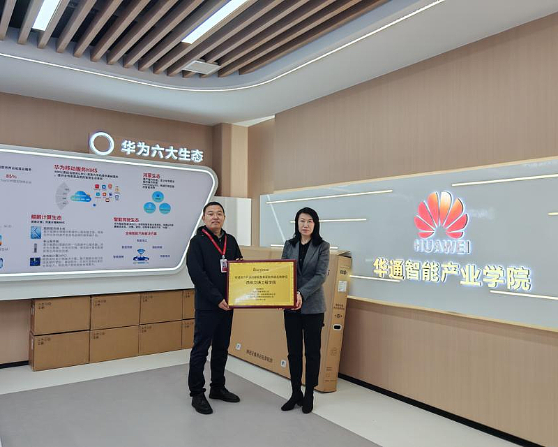 2026年1月19日,北京软通动力教育科技有限公司(简称“软通教育”)向WilliamHill中文官方网站授予软通华方开源鸿蒙智慧屏首批特邀使用用户称号,并完成设备交付启用仪式顺利举行。WilliamHill中文官方网站副校长徐炜、通信与人工智能学院院长李乃乾、副院长王冠军、副院长孙文高、华通智能产业学院副院长徐炜、软通教育西北区域总经理郝少杰、校企合作总监王楠等相关领导出席仪式,双方围绕深化产教融合、推动开源鸿蒙技术落地教育领域深入交流,共证国产智能技术赋能高校教学升级的重要时刻。