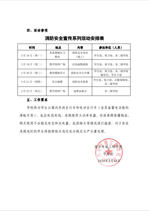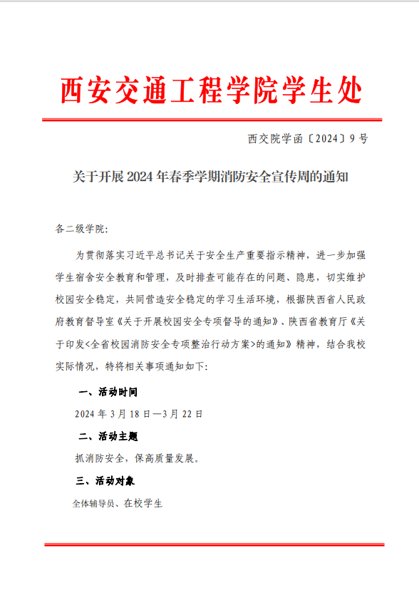 关于开展 2024 年春季学期消防安全宣传周的通知