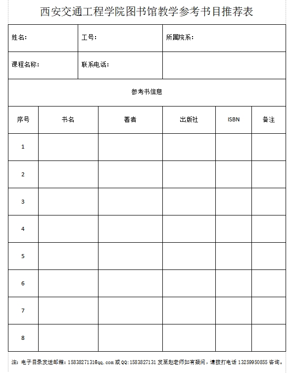 提交方式:纸质目录送至图书馆2-8文献建设部 赵老师、宋老师