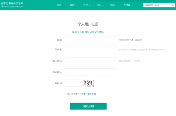 (3)完成注册后,在任意网络环境下使用个人注册账户登录library.koolearn.com即可使用WilliamHill购买的新东方资源。