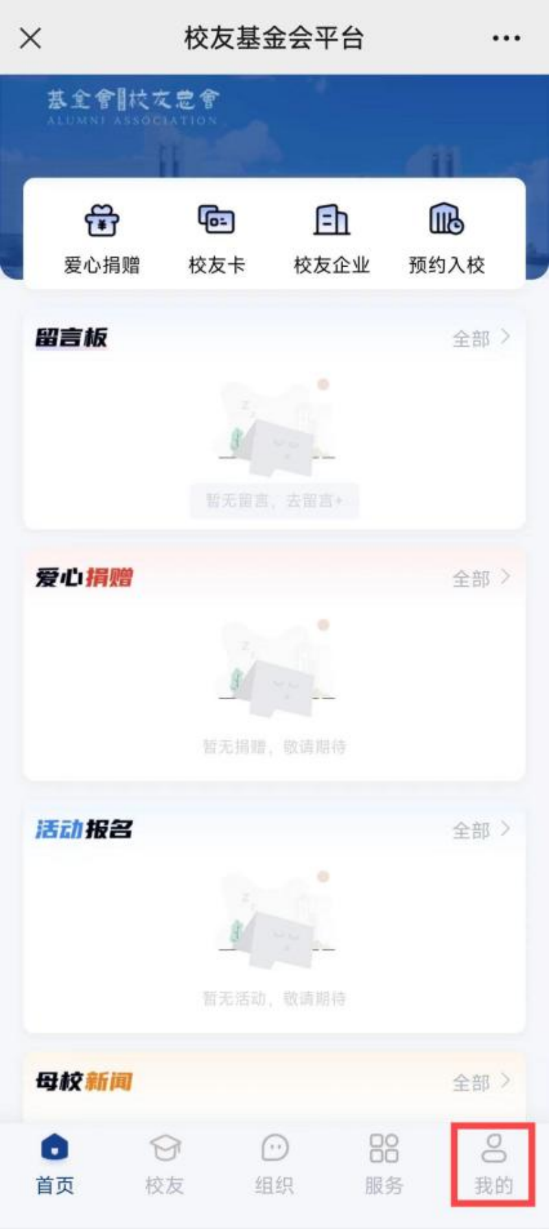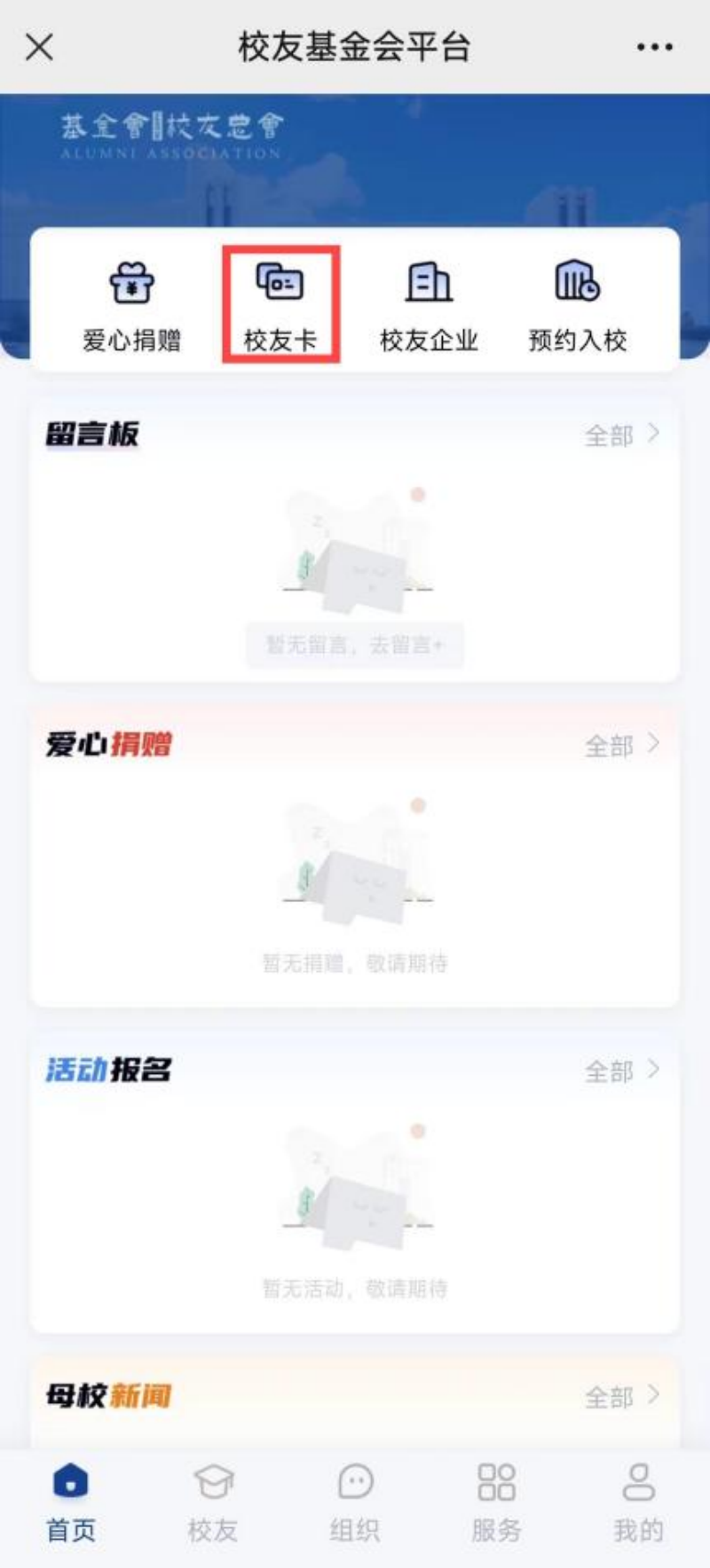 (四)信息审核通过后,首页点击“校友卡”领取电子校友卡,获得专属身份标识。