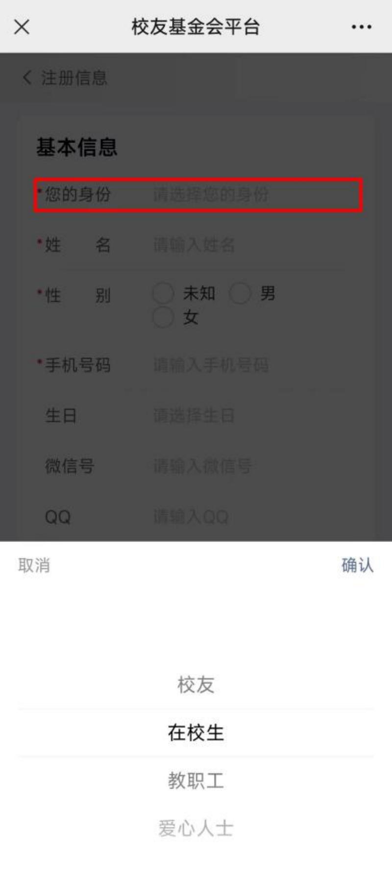 (三)根据实际情况选择身份并完善个人信息,点击“提交”。