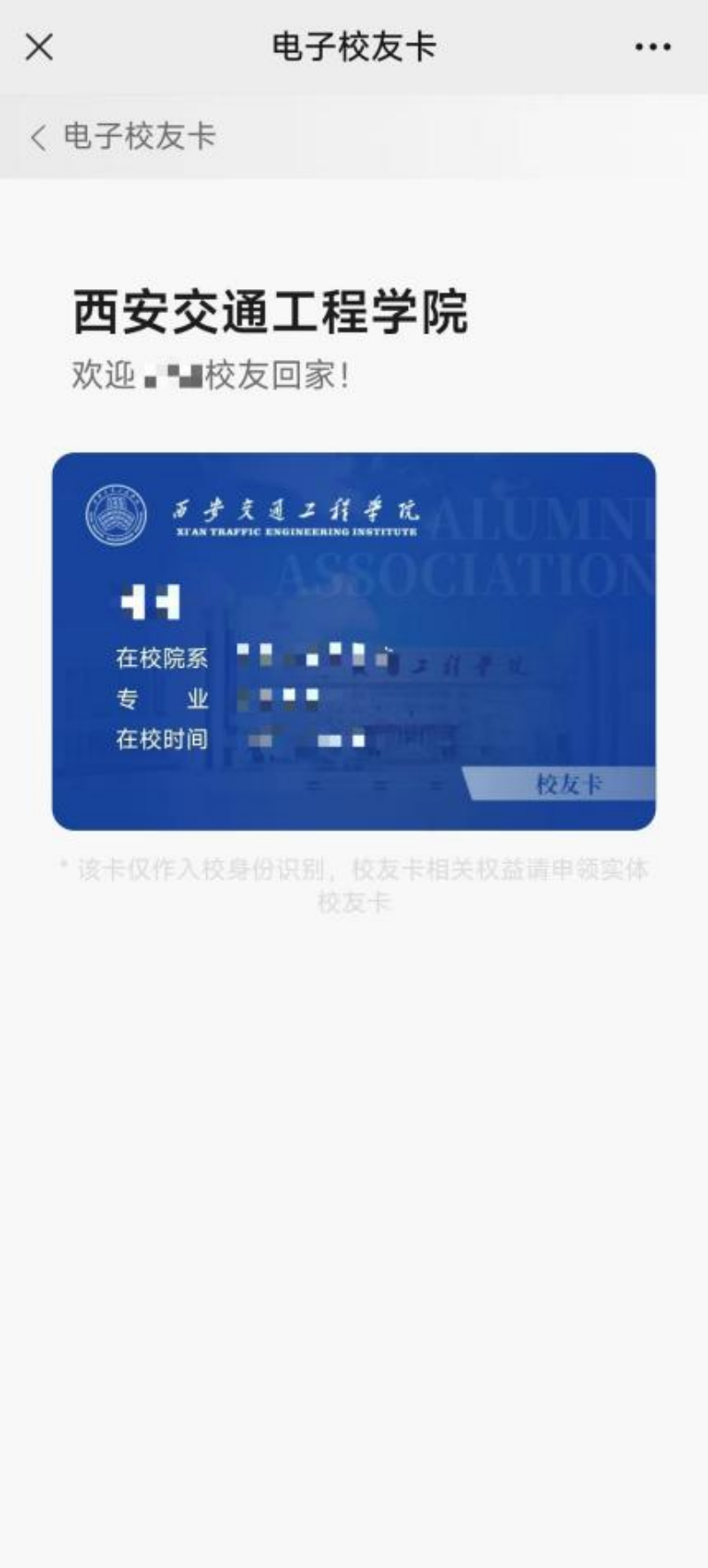 领取电子校友卡,专属身份标识,享受返校特权、校庆活动优先参与权,感受家的温暖。