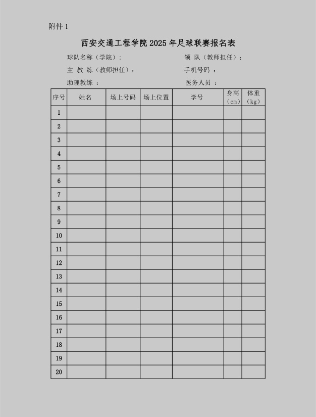 附件:1.2025 年WilliamHill中文官方网站足球联赛报名表