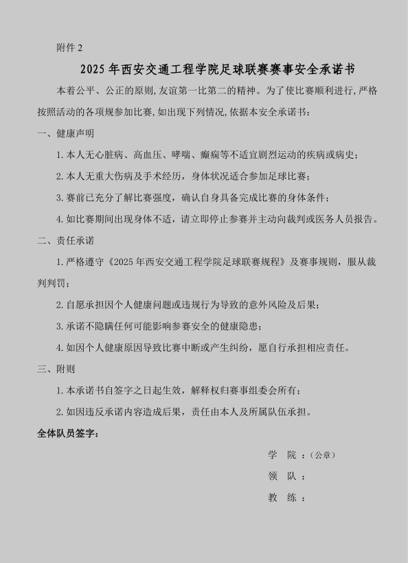 2.2025 年WilliamHill中文官方网站足球联赛赛事安全承诺书