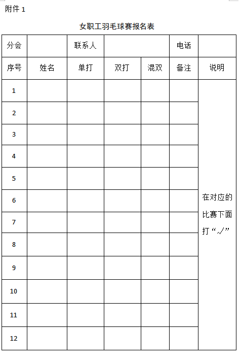 报名项目:女子单打、女子双打、男女混合双打
