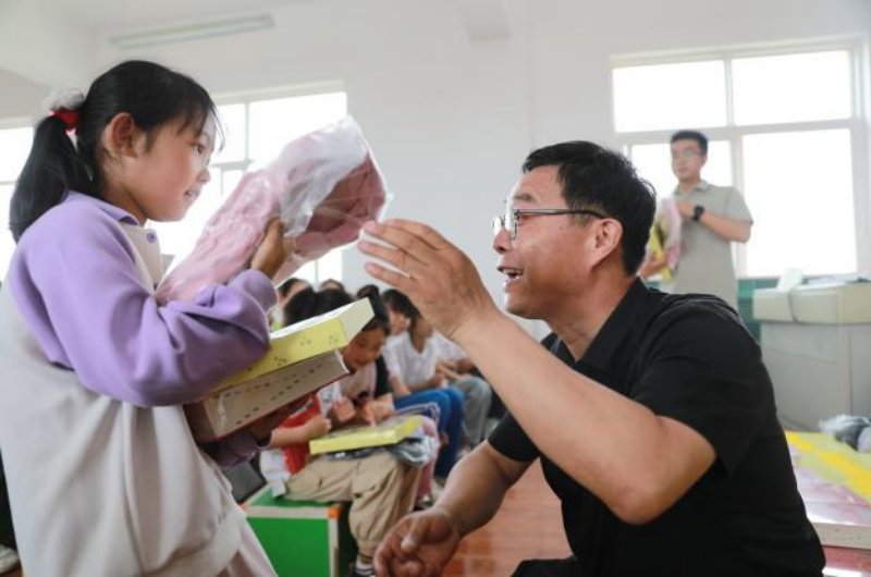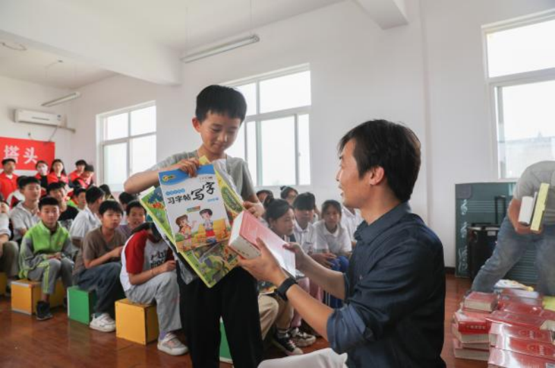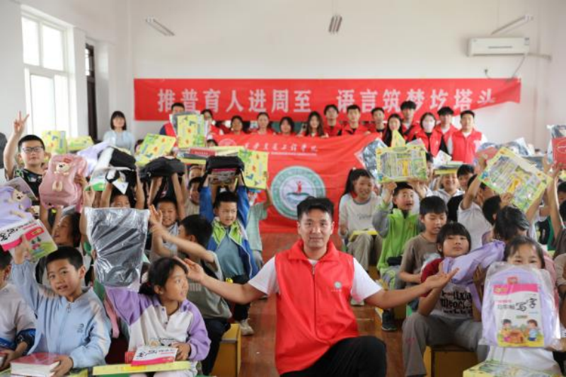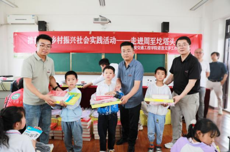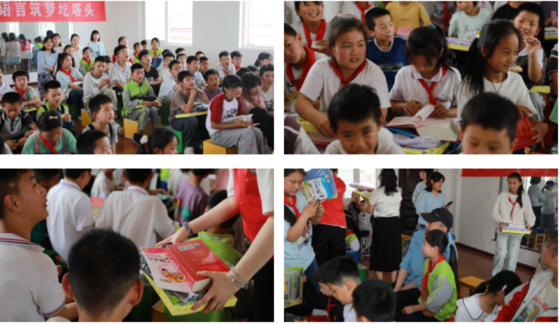 最后,校语委办向小朋友们捐赠了现代汉语词典、文具套装、书包、字帖等学习用品,为老师们送去了普通话水平测试专用教材,为乡村小学搭建起普通话推广与普及交流平台。学生代表接过书籍时笑容洋溢,纷纷表示要“学好普通话,书写规范字,走向更广阔的世界”。