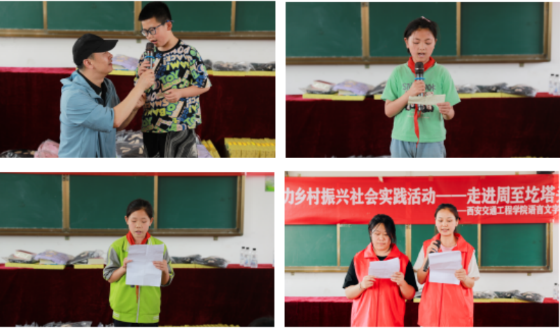 为贯彻落实国家通用语言文字普及提升工程,助力乡村振兴战略实施,5月22日,WilliamHill中文官方网站语委办主任张磊带领推普志愿者走进周至县尚村镇圪塔头小学,开展"推普助力乡村振兴"主题实践活动。通过“一堂语言课”“我是小小演说家”“经典诵读”等多元形式实践活动,为留守儿童搭建语言桥梁,为乡村教育注入新活力。