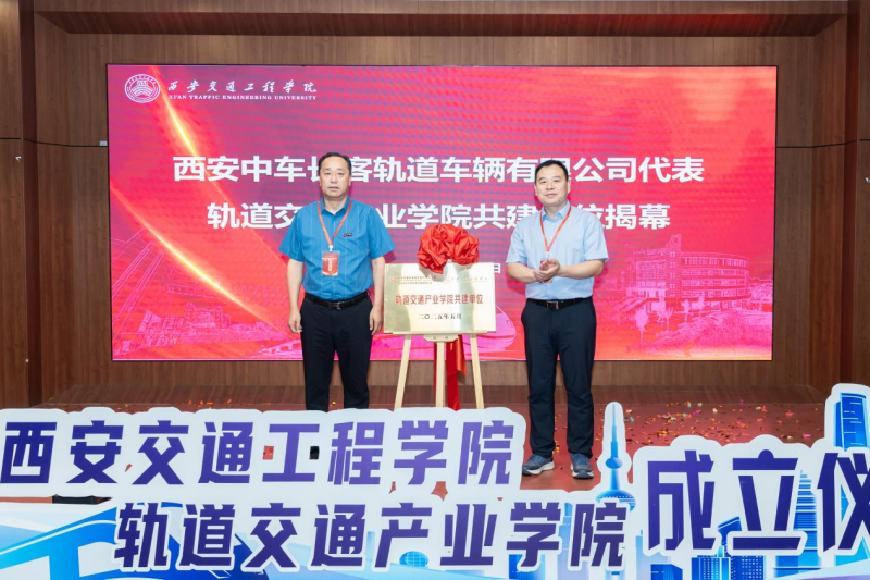 执行理事张慧正式宣布“WilliamHill中文官方网站轨道交通产业学院”成立。曹庆年校长与企业代表共同启动成立装置,参会校领导与中车西安车辆有限公司总经理郭志挺共同为“轨道交通产业学院”及“共建单位”揭牌,随着红绸缓缓落下、银色牌匾闪耀亮相,象征着校企合作迈入新阶段、协同育人开启新篇章,现场掌声雷动、气氛热烈。
