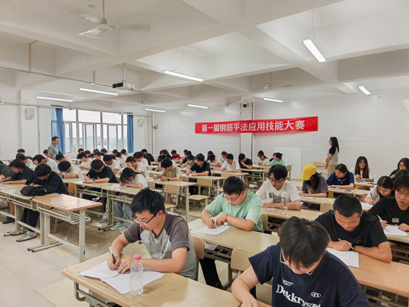大赛以“提升专业技能,强化知识应用,选拔优秀人才”为宗旨,紧密对接行业核心需求。比赛形式设计严谨且富有挑战性,采用“闭卷笔试”方式,重点考查学生在“钢筋平法识图与钢筋工程量的精确计算”方面的理论基础与实际应用能力。试卷内容涵盖结构施工图识读、钢筋构造要求理解、下料单编制等关键知识点,全面检验了参赛选手的专业素养和解决复杂工程问题的潜力。考场内秩序井然,选手们全神贯注,争分夺秒,展现了扎实的知识储备和严谨的工程思维。