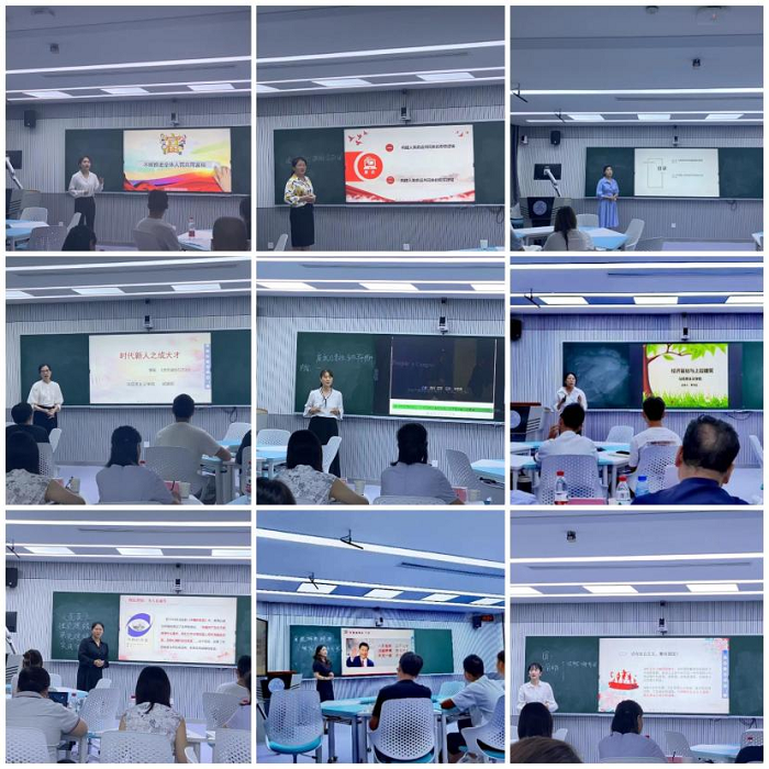 比赛现场,参赛教师教态大方,举止得体,精神饱满,教学投入;思路清晰,逻辑严谨,综合素质高,个人教学特色突出;备课充分,精心设计教学各个环节,“工艺”精湛;教学内容符合选题范围,基本理论阐释清楚,基本事实论述准确,重难点突出;注重教学互动,突出学生主体地位,调动学生参与课堂积极性;注重思想理论教育和价值引领,让学生感觉“营养丰富味道又好”。评委老师根据教学设计、教学内容、教学方法、教学效果、教师素养五个方面公平、公正地评选出王莉、邱豆豆等六名“教学标兵”和郭超妮、刘相君等六名“教学能手”。