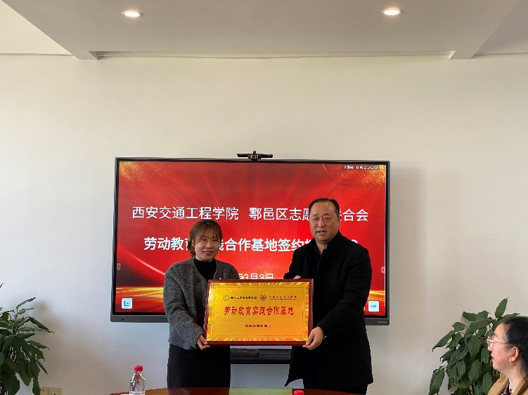 学生处处长钱穆萨与鄠邑区志愿者联合会正式签订劳动教育实践合作基地协议