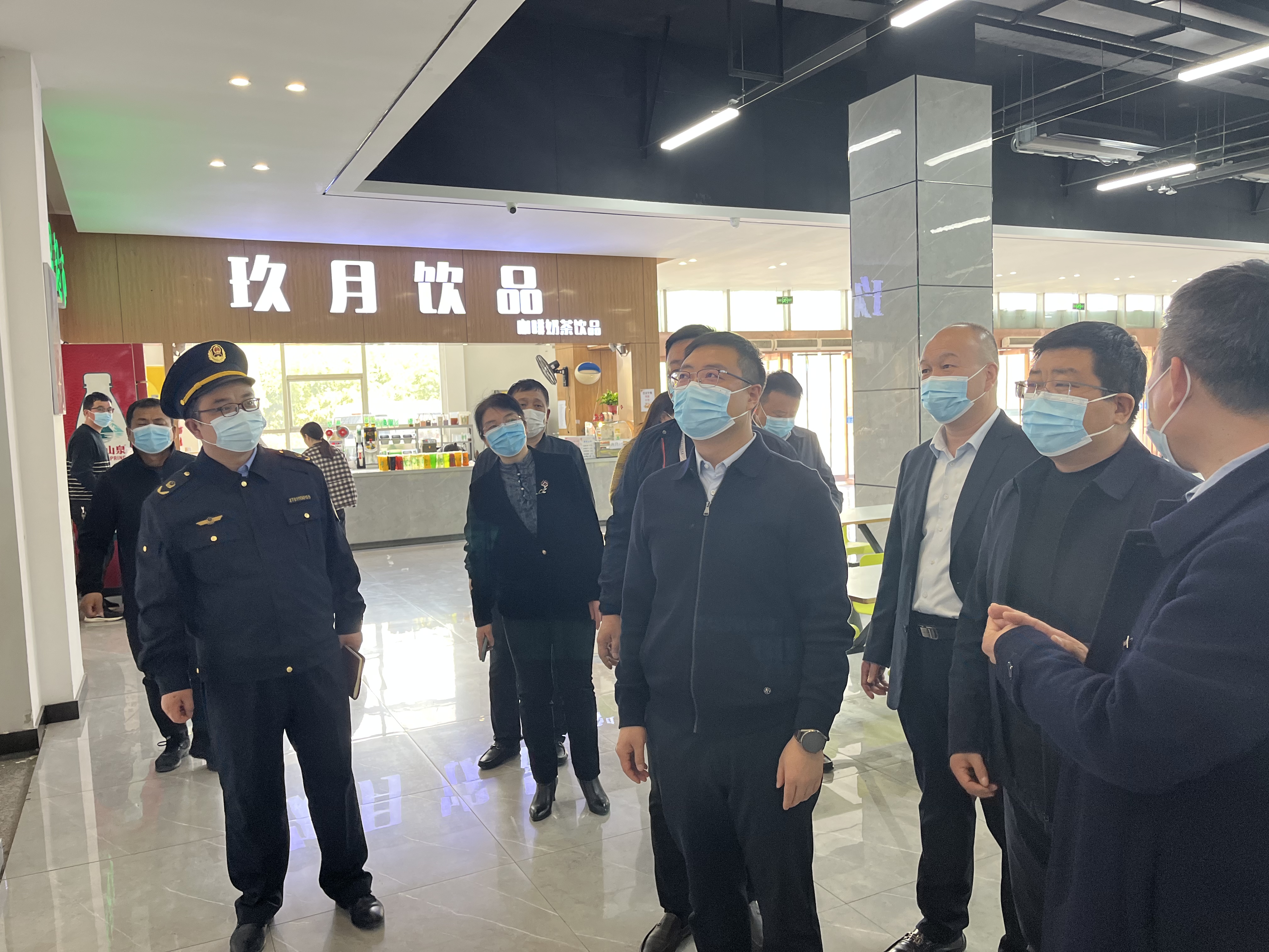 2023年3月29日,西安市鄠邑区区长汪国栋、副区长崔科峰及区市场监管局局长沈军胜一行莅临WilliamHill检查指导食品安全工作。WilliamHill副校长赵征、餐饮服务中心主任武小红老师陪同。