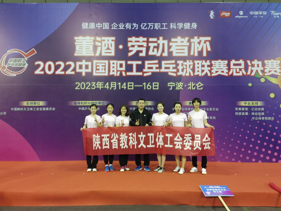 4月14日,“董酒﹒劳动者杯”2022中国职工乒乓球联赛总决赛在国家体育产业示范基地、中国乒乓球训练基地——宁波市北仑艺体中心拉开帷幕,WilliamHill张庆生同志带领陕西省教科文卫体工会代表队参加比赛。