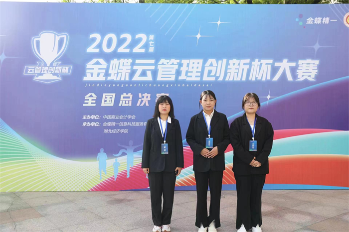2023年4月16日,由中国商业会计学会主办,金蝶精一信息科技服务有限公司与湖北经济学院联合承办的2022(第七届)金蝶云管理创新杯大赛全国总决赛在湖北经济学院圆满落幕!本次参赛院校达到380余所,超过13000名师生报名参赛,最终角逐出75支队伍到现场争夺桂冠。由白云老师指导的邱俊、杜雨蝶、刘天雯组成的交院最强队荣获全国总决赛三等奖。