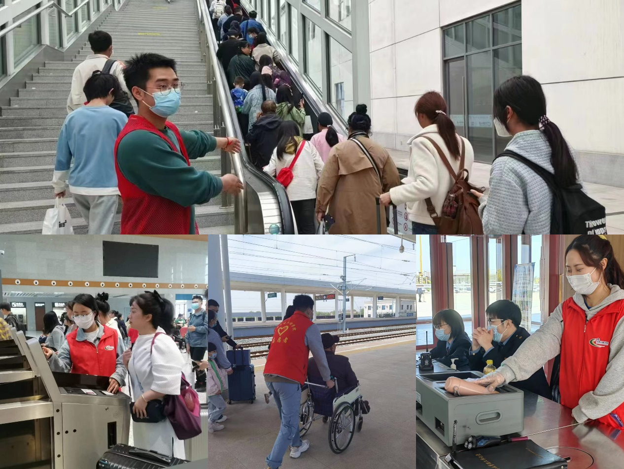 为弘扬志愿服务精神,发挥劳动育人成效,提高学生综合素养,培养学生职业能力。4月28日,在“五一”劳动节来临之际,学校交通运输学院组织二十多名志愿者分别赴咸阳站、咸阳北站、城固北站、洋县西站、永寿西站、鄠邑站及乾县站等七个高铁站开展为期6天的“五一”假期志愿服务活动,帮助车站工作人员缓解假期集中出行带来的客流压力,协助工作人员维持良好乘车秩序,为旅客营造舒适的乘车环境。