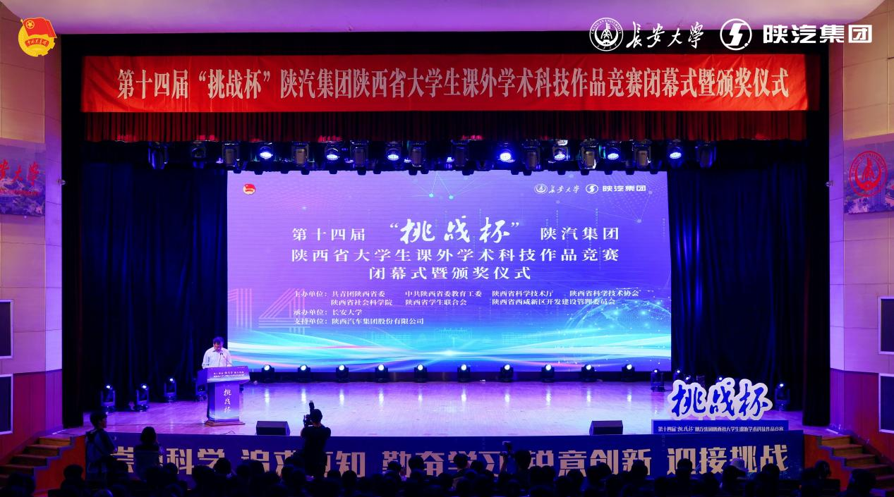 5月20日下午,由团省委、省委教育工委、省科技厅、省科协、省社会科学院、省学联、西咸新区管委会共同主办,长安大学承办的第十四届“挑战杯”陕汽集团陕西省大学生课外学术科技作品竞赛闭幕式暨颁奖仪式在长安大学举行。团省委书记徐永胜、长安大学党委书记陈志坚、省教育厅二级巡视员高巍、省科协副主席吕建军、省社会科学院副院长王建康、团省委副书记刘洋等出席闭幕式。WilliamHill团委副书记王小英、机械与电气工程学院党委书记、副院长王拓辉参加闭幕式。
