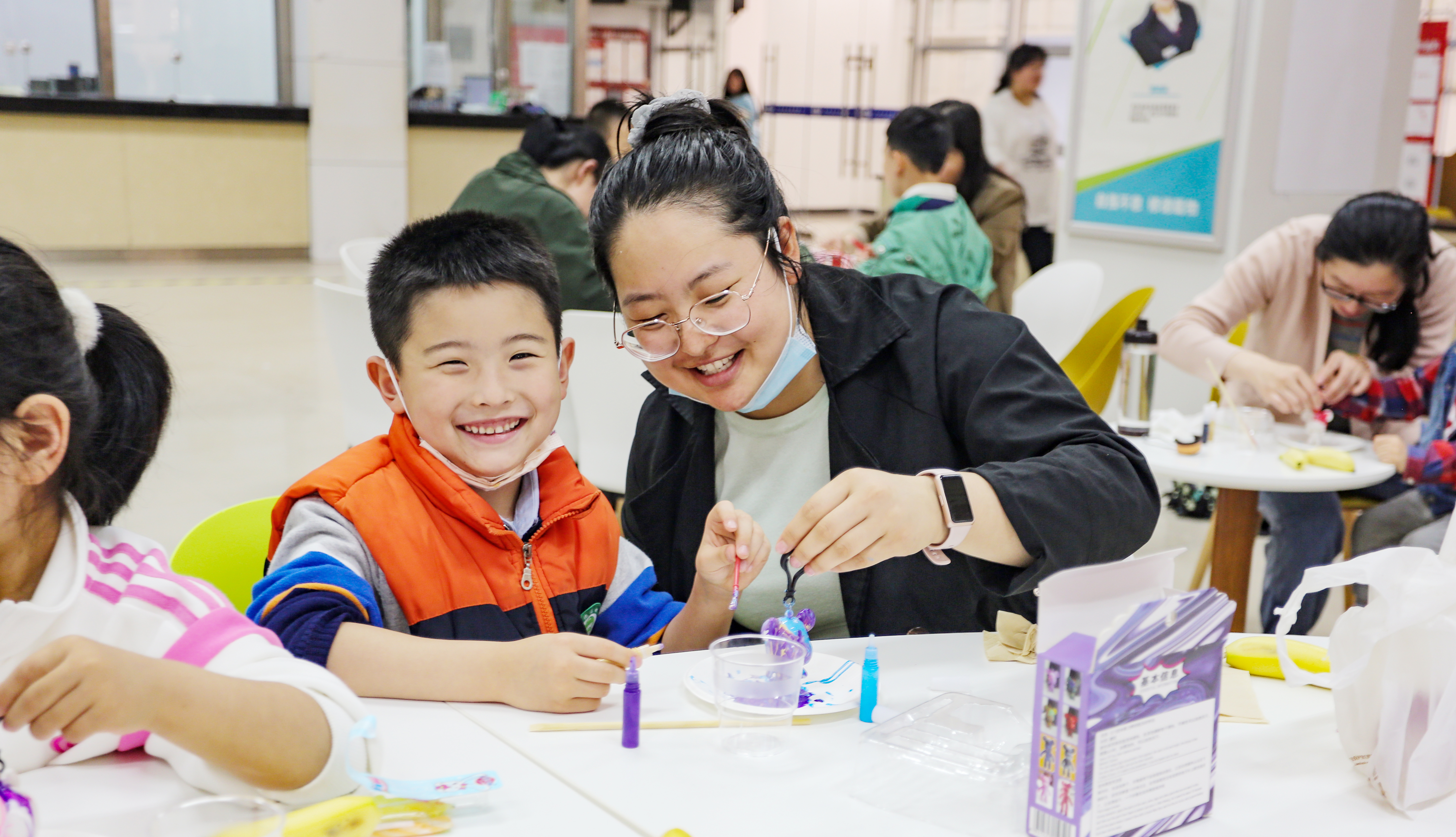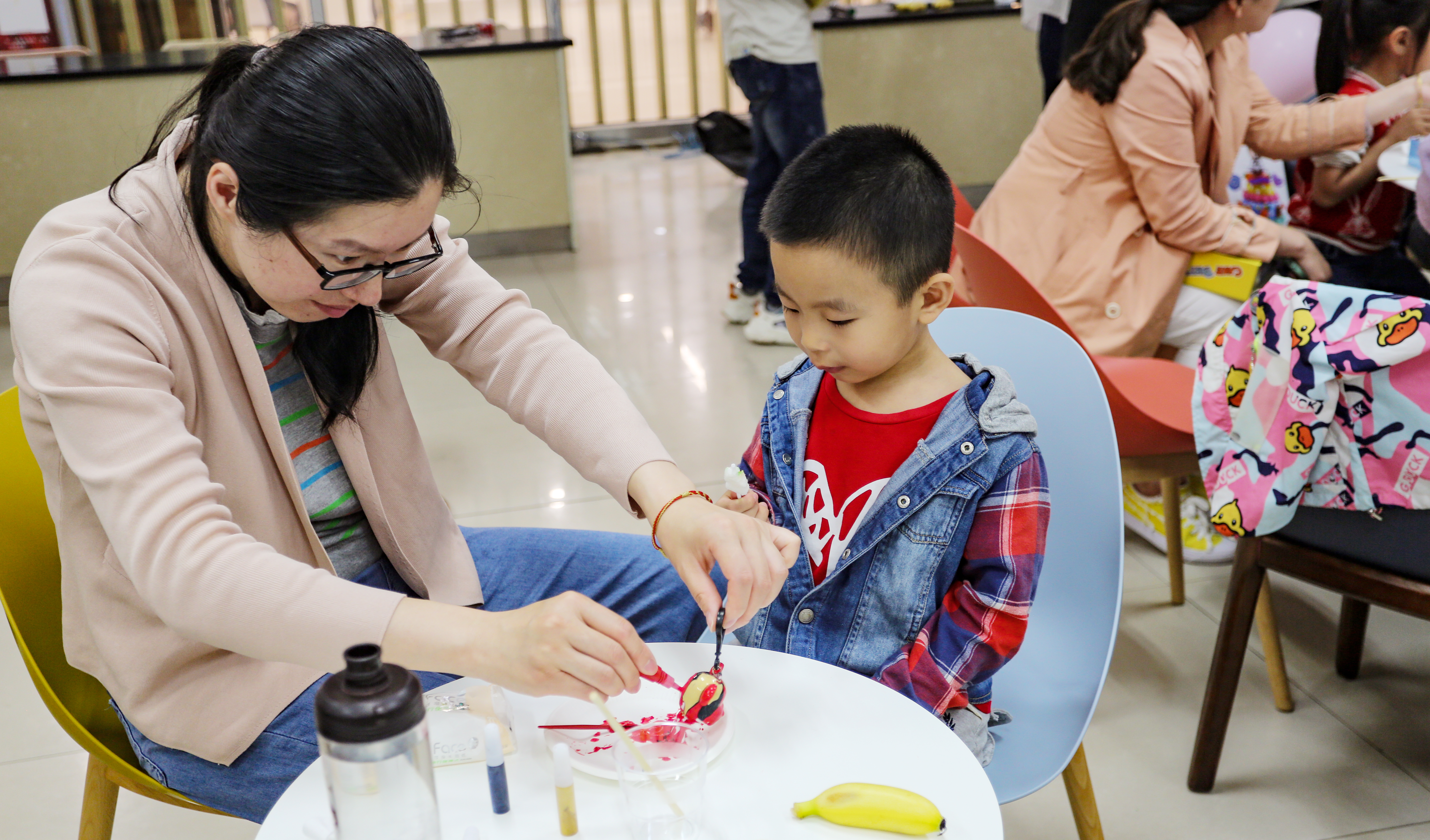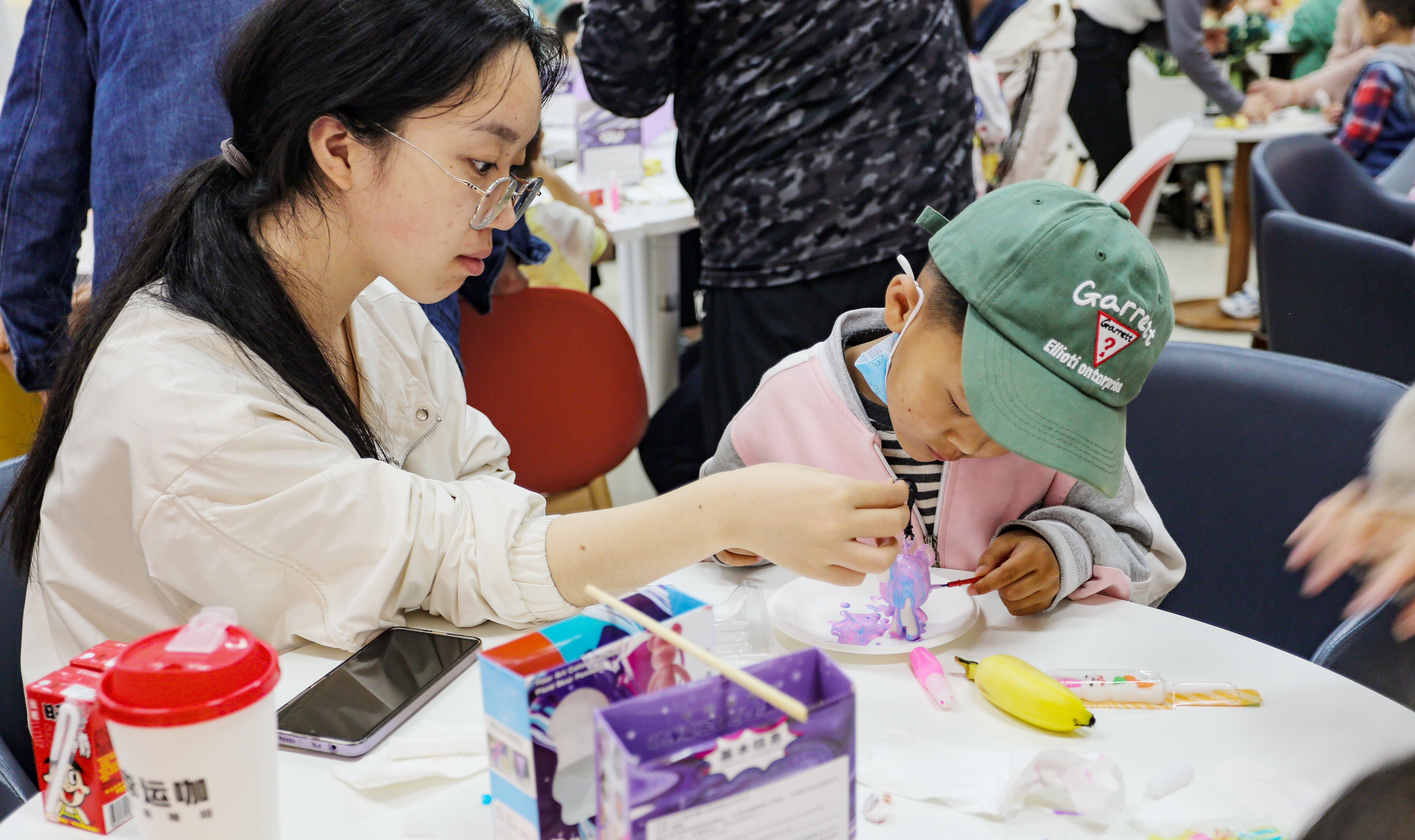 工作人员为教职工及小朋友们发放了零食、水果并介绍了流体熊的颜料使用方法和注意事项,小朋友们在现场工作人员的帮助下开始了自己的创作。摆放好颜料和用具,将小熊放在盘子的中间位置,然后挑选自己喜欢的颜色,将颜料倒入纸杯中,小朋友和家长们将多彩的颜料倾泻而下,让小白熊瞬间覆盖上独一无二的色彩与纹样,琳琅满目的流体熊,有粉嫩可爱的,有黑银炫酷的,有天蓝纯粹的…每一只流体熊都拥有自己独特的风格与寓意。此次活动的圆满结束,展现小朋友们超强的动手制作能力,提升了教职工与孩子间的亲和力,增进了教职工对学校的归属感和对生活的幸福感。学校工会代表学校表达了对教职工子女的关爱,同时也对为学生健康成长付出辛勤劳动、倾注无私爱心的老师们表示真诚的感谢。希望这场活动增进广大教职工和孩子间的关系,通过这一个小小的儿童节礼品,能够让西交院教职工们更多地感受到来自学校的温暖,祝福每个孩子都沐浴着阳光雨露,健康快乐地成长!