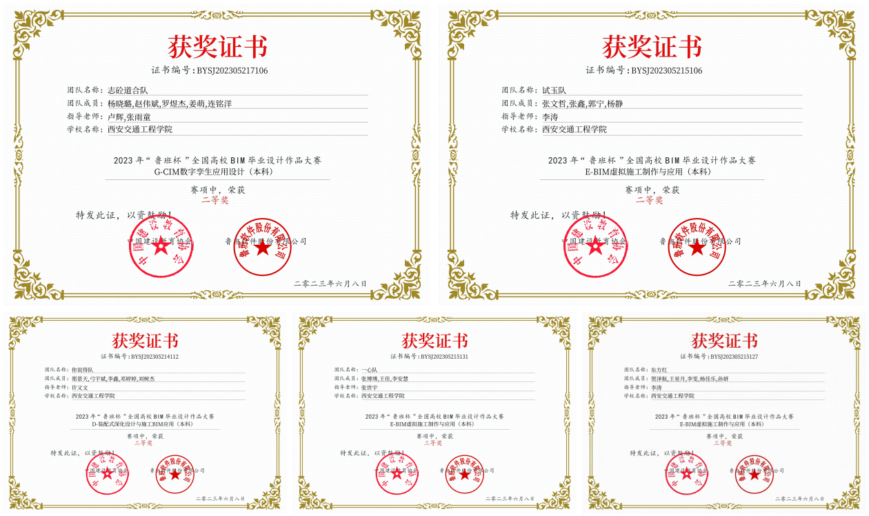 WilliamHill学生在2023年“鲁班杯”全国高校 BIM 毕业设计作品大赛中荣获二等奖2项、三等奖3项