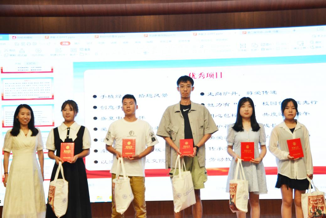 现场劳动教育优秀指导教师黄英老师宣读了表彰名单,对7个学院颁发“优秀组织”奖、文紫阳等46名学生颁发“优秀个人”奖、“营造无烟校园环境”等39个项目颁发“优秀项目”奖,以及11名“优秀指导教师”奖。