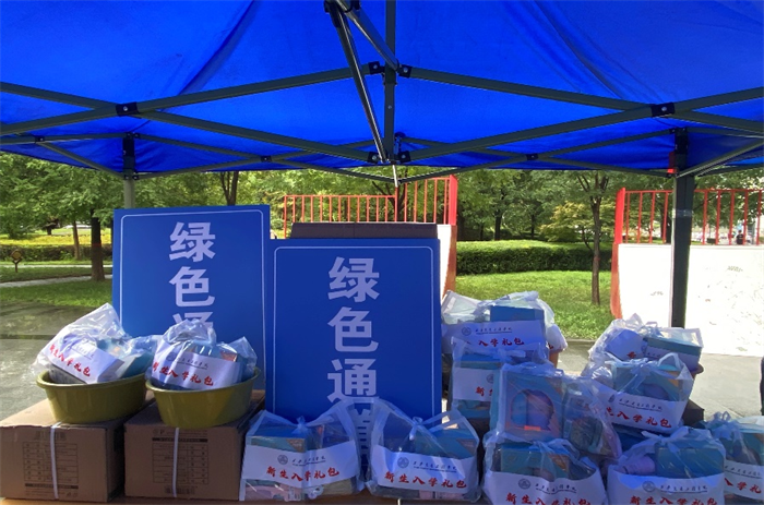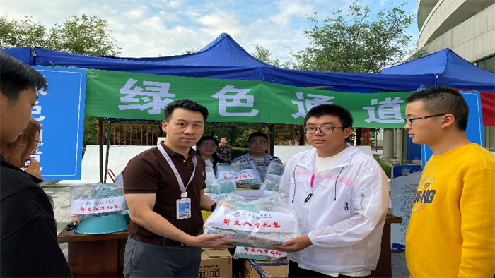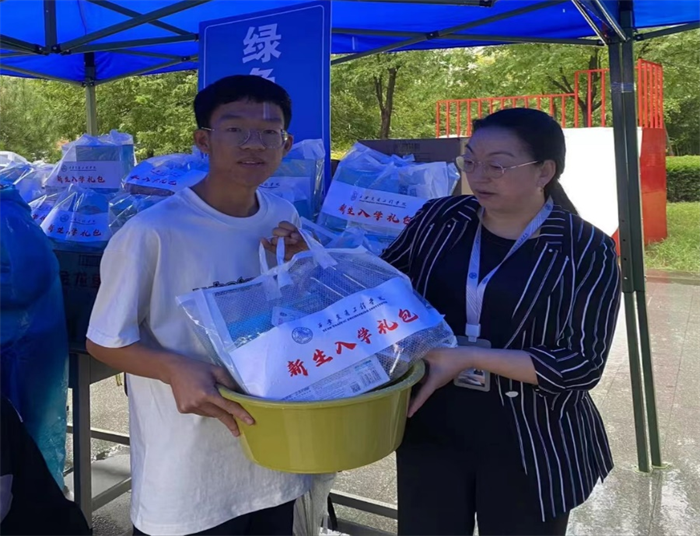 学生处副处长张莉给新生发放大礼包