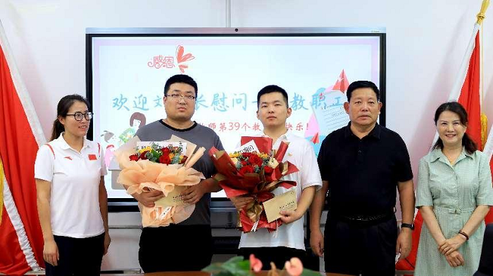 金秋九月,硕果飘香,祝福飞扬。在第39个教师节来临之际,9月7日,校领导刘建朝、马智勇、曹庆年、石广田、王勇、徐炜、刘建华、潘春辉分别带领党委教师工作部、人事处(教师发展中心)、工会等部门负责人开展教师节慰问活动。