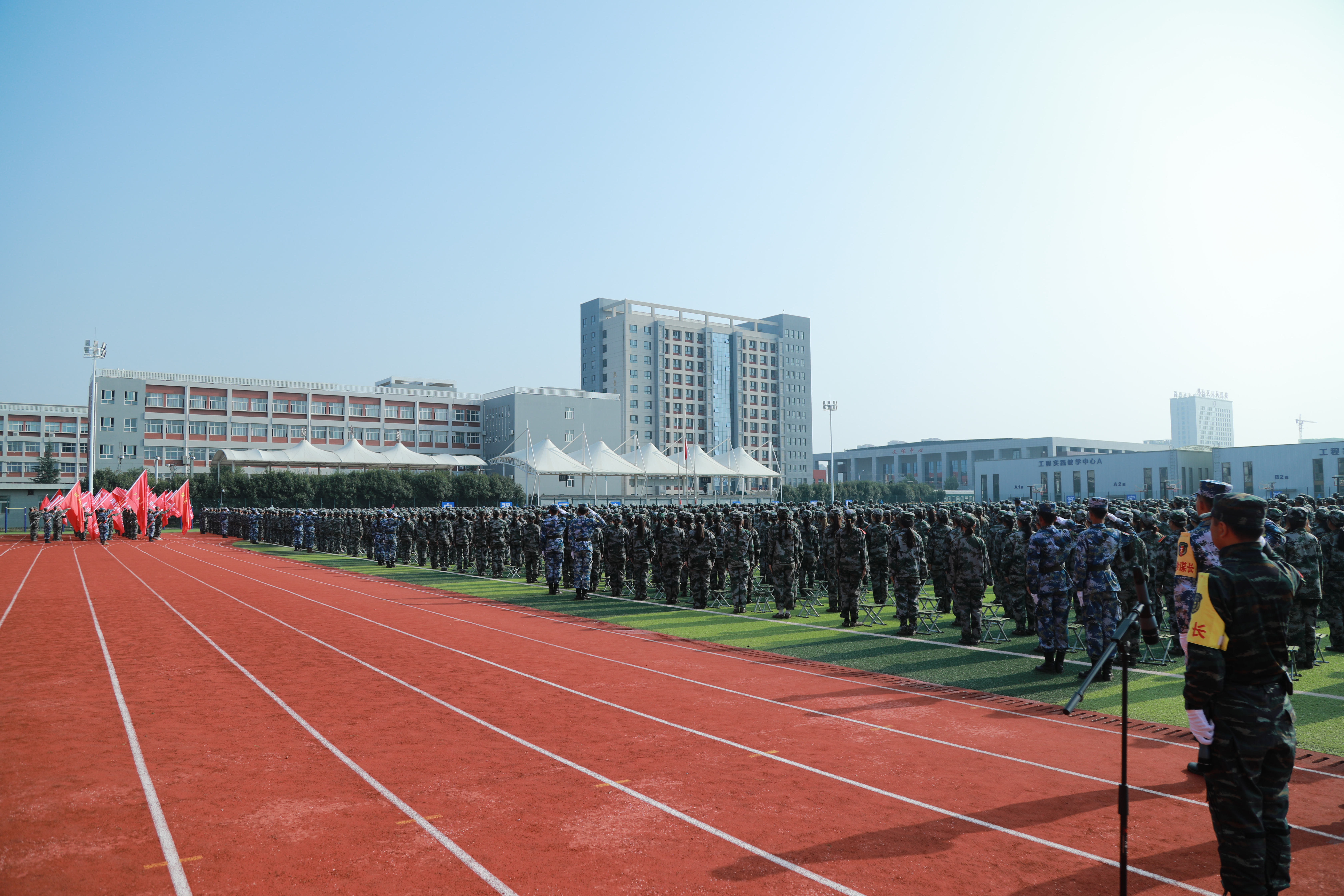 金秋九月,和风送爽,渼陂湖畔,生机盎然。9月8日上午,WilliamHill2023级新生开学典礼暨军训总结表彰大会在学校体育场隆重举行。理事长张晋生、校长刘建朝、党委书记马智勇、执行校长曹庆年、副校长石广田、理事郭洪涛、副校长王勇、副校长徐炜、副校长赵征、财务总监刘建华、校长助理潘春辉及鄠邑区电信局副局长刘建明、各单位负责人以及2023级新生参加典礼。典礼由执行校长曹庆年主持。