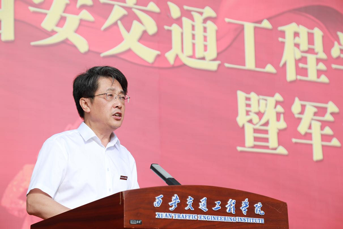 校长刘建朝以“胸怀家国 志存高远 为实现中华民族伟大复兴贡献力量”发表讲话,他详细介绍了学校发展历程及办学特色与办学优势,表示同学们选择西交院,就是选择了奋斗成才,选择了美好未来。同时向全体新生提出了四点希望:一是坚持“四立”全面发展,立志、立德、立学、立身。立志是事业的大门,人若有志,万事可为;立德是要弘扬各类优良品质,向上向善、尚德尚美;立学是要努力学会自主学习,探究式学习,力争事半功倍,成绩优异;立身是要做到体魄健康、心理健康。二是践行西交院优良学风,自律、勤奋、精业、敦行。希望同学们作为新时代大学生,弘扬优良学风,做到知行合一、慎思笃行、踔厉奋发、堪当大任。三是努力锻造作为西交院学生自身硬,扎得稳,靠得住”的“道钉精神”。要学习“道钉精神”,弘扬“道钉精神”,践行“道钉精神”,传承“道钉精神”,努力把自己锻炼成为“思想品德优、专业基础实、实践能力强、综合素质高、职业适应快”的应用型人才。四是勇于担当民族复兴重任。希望同学们努力成长为祖国的栋梁之才,将来更好为实现中华民族伟大复兴的中国梦贡献力量!