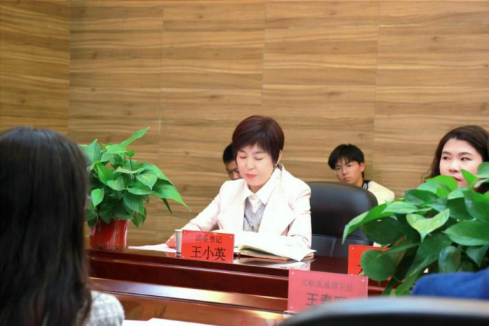 团委书记王小英致辞并讲话,充分肯定了图管会筹备一年以来的工作成绩,希望新一届图管会成员能借助这个平台,加强与各学院、各兄弟协会的交流,摒除浮躁,脚踏实地,谱写图管会新篇章。