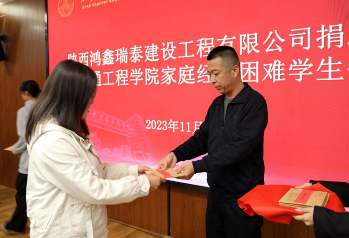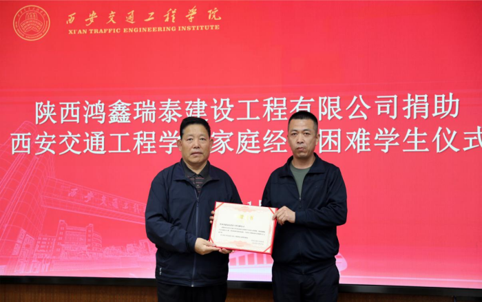 陕西鸿鑫瑞泰建设工程有限公司向学校捐助资助金