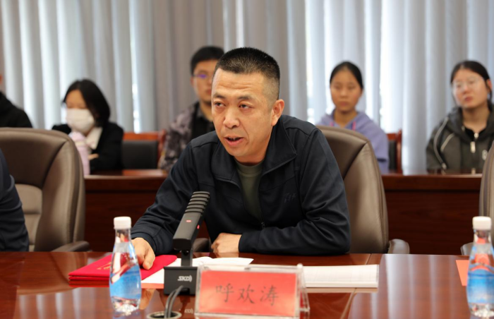 总经理呼欢涛发表讲话。他表示,将秉承初心,把捐资助学的行动坚持下去,让更多的困难学生能够从中受益,收获成长,传递爱心,鼓励学生们要以积极乐观的态度克服困难,在学习上要有恒心、决心和自信心,学有所成后积极回报母校、回报社会。
