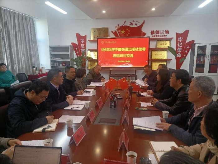 石广田对中国铁道出版社有限公司副总经理杨新阳、阚济存副编审等一行表示热烈欢迎,并介绍了学校基本概况。他表示,学校与中国铁道出版社有渊源深厚的历史和良好的合作基础,希望今后双方在教材建设、课程建设、教学资源建设等方面,从共研、共建、共享、共赢四个方面全面深化战略合作。