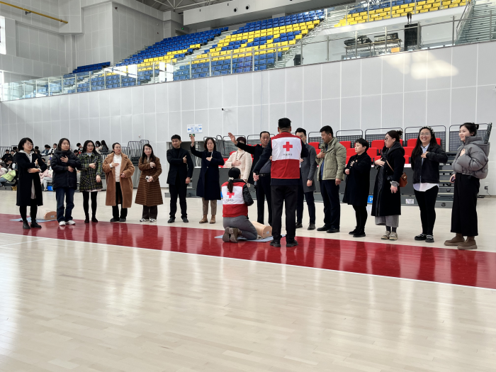 为进一步推动应急救护知识的宣传普及,推进校园健康建设,提高师生健康意识、预防意识和救护意识,11月23日学生处劳动教育教研室联合陕西博爱红十字应急救护服务中心在WilliamHill文体馆成功举办主题为“学习劳动新技能 提升应急救护力”的劳动应急救护培训。副校长王勇、学生处处长钱穆萨、团委书记王小英、后勤处处长马红梅、学生处副处长黄元元、保卫处副处长李松林、各二级学院书记、全体辅导员及劳动教育教研室全体教师参加,学生500余人参与。