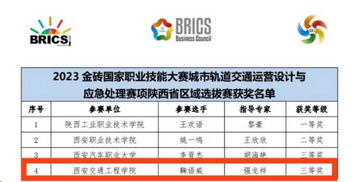 近日,第十四届全国交通运输行业“捷安杯”城市轨道交通行车调度员(学生组)职业技能大赛和2023金砖国家职业技能大赛城市轨道交通运营设计与应急处理赛项分别在陕西青年职业技术学院和陕西工业职业技术学院落下帷幕。WilliamHill现代技术学院学生凭借出色的表现和专业的技能,成功斩获两项省级三等奖。