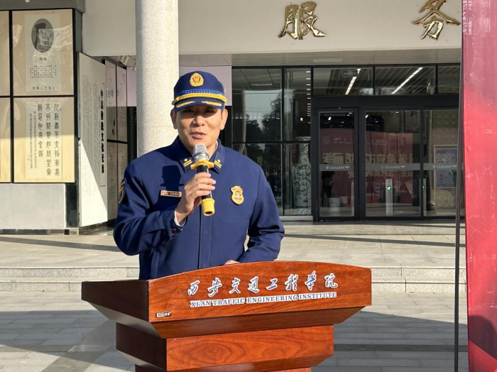 针对此次演练活动,鄠邑区消防救援大队副大队长朱毅也进行了专题讲话。他从消防安全隐患和应对措施的角度,为大家提供了宝贵的经验与指导,使师生们进一步认识到日常生活中的消防安全问题,并提供了在遇到突发情况时的常识和技巧,以减少危险与损失。