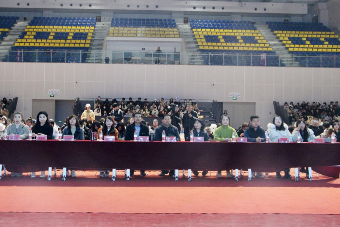 为综合考察学前教育专业师范生专业素养,展示学前教育专业教学改革成果,进一步提升人才培养质量,强化专业特色,增强师范生教学实践能力与舞蹈技能水平,培养和造就一批师德高尚、教学理念先进、教学技能扎实的优秀教师后备力量。11月29日晚,人文与管理学院在文体馆举行了第三届“桃李杯”师范生舞蹈大赛决赛,校长刘建朝、人文与管理学院院长赵德利、党委书记李沙沙、副院长郝柯羡和1000余名学前教育师生一同参加了比赛。评委由学前教育教研室主任王盼、副主任梁茹、舞蹈教师杨欣梅、张萌和刘晓威担任。