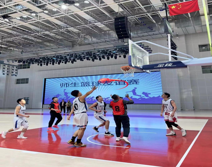 本次比赛由学生篮球赛冠军队和教职工联队之间展开较量。比赛过程中,学生队员们展现出扎实的个人技能、逆风也不服输的精神、对抗时的沉稳睿智,教师队伍中每个人的强劲实力和他们攻守搭配的默契配合。队员们运球的同时积极开展防守,你争我抢,你追我赶,闪转腾挪,场上队员迎“篮”而上,熟练运球、突破、拼抢、反攻、上篮,动作行云流水,两支队伍均展现了默契的配合和团队的力量。场上裁判员们公正无私,判断专业无争议。场下观众们全神贯注地观看每一个精彩瞬间,加油声此起彼伏,而在球迷的加油、呐喊和欢呼声中,现场氛围持续高涨。