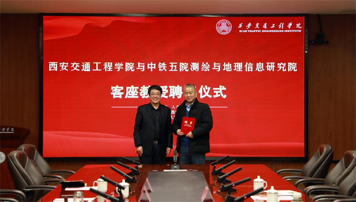 为了进一步深化产教融合、校企合作,提升人才培养质量,2023年12月13日,2023级“测绘生产”岗位校企合作人才共建培养班签约并揭牌,同时聘任中铁五院测绘与地理信息研究院副总工杜兆宇、龚鹏程、冯茂林3名企业技术人员为学校客座教授。中铁第五勘察设计院测绘与地理信息研究院副总工程师杜兆宇、办公室主任刘萍萍代表企业出席,WilliamHill执行校长曹庆年、校长助理潘春辉、现代技术学院院长都娟丽、党委书记田宏顺、副院长党亮亮共同出席。
