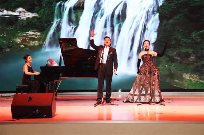 音乐会由“信念丰碑”“继往开来”“颂歌嘹亮”“奋揖扬帆”四个篇章组成,以人文与管理学院合唱团带来的交响序曲《打起锣鼓唱起歌》《祖国颂》拉开序幕。音乐学师生倾情的演绎、宏伟庄严的歌唱旋律,展现了新时代西交院人昂扬向上的精神风貌。紧接着,优美动听的古筝演奏曲《盛世国乐》《花好月圆》展现了中华文化的独特魅力。钢琴八手联弹《我和我的祖国》、男高音四重唱《把一切献给党》深情的旋律和激昂的节奏充满了对祖国的深意和敬意。水滴乐队歌曲串烧以轻快的旋律传递出新年将至、万象更新的喜悦气氛,将全场气氛推向了高潮。悠扬的男女声合唱《最亮的火焰》、女声二重唱《和谐圆舞曲》情真意切、令人陶醉,蒙古族舞蹈《奔腾》欢快的步伐和热情的舞蹈将新年的喜庆与欢乐展现的淋漓尽致;歌剧联唱《映山红》《海棠让他去吧》等多部经典作品华彩呈现,带着初心使命和担当致敬前辈,继续传承一段永不消逝的声音。
